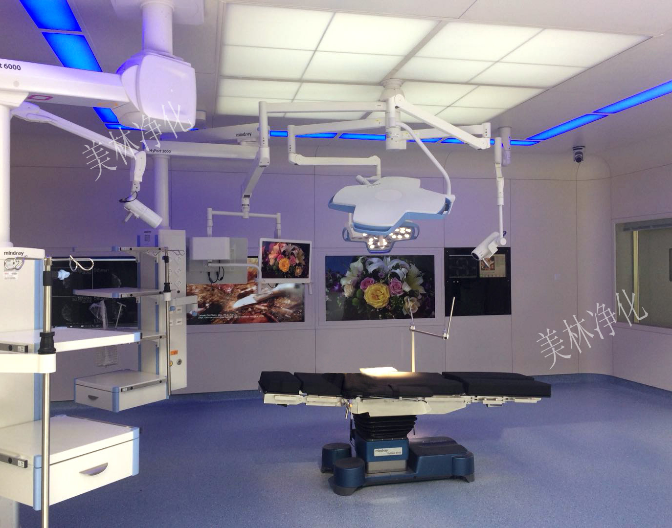 美林的數(shù)字化手術(shù)室,用采用不需龍骨的電解鋼板快裝手術(shù)室墻體及吊頂,電腦控制,巨大的液晶屏實(shí)時(shí)顯示手術(shù)情況,并傳輸?shù)竭h(yuǎn)端供專家會(huì)診;手術(shù)室情報(bào)柜液晶觸屏,可自由切換控制狀態(tài);墻上的液晶屏展示病人X光片,配合背景音樂,優(yōu)美風(fēng)景盡情呈現(xiàn)